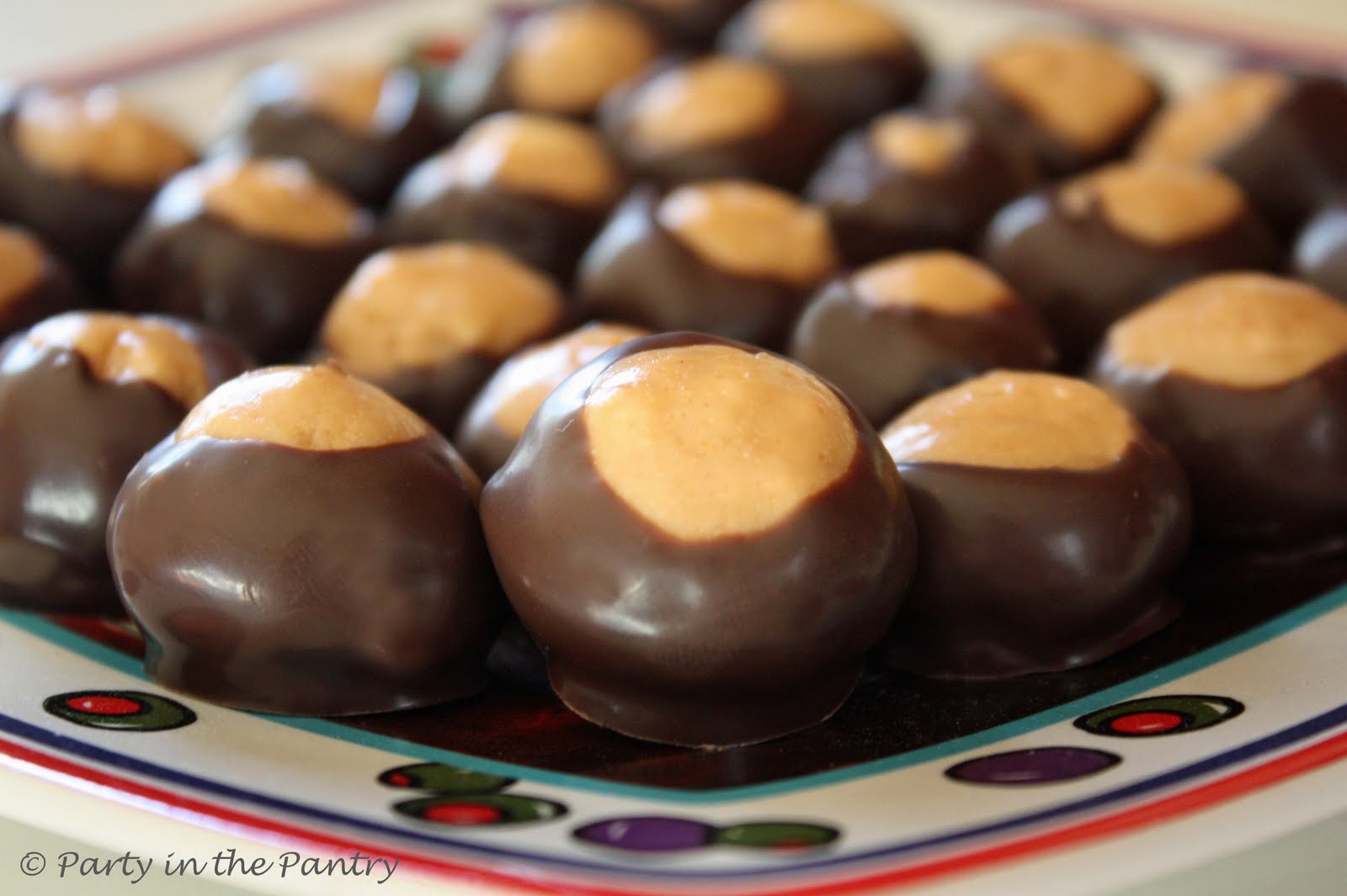 Buckeye candies are shaped and colored to look like the nut of the buckeye tree, the State tree of Ohio.